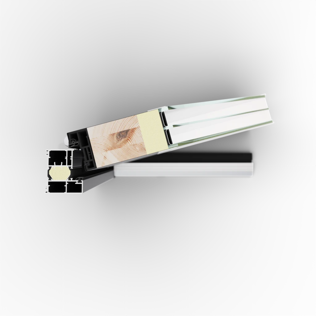 A DS68 AC bejárati ajtó 68 mm vastag, többkamrás alumínium tokos rendszer, fa merevítő maggal és hőszigetelő betéttel kombinálva. A hibrid szerkezet kiemelkedő statikai stabilitást, tartósságot és javított hőszigetelési teljesítményt biztosít, miközben modern, letisztult megjelenést kínál. A rendszer az EN 14351-1 szabvány szerint bevizsgált, tömör kivitelben akár Ud = 1,0 W/m²K hőátbocsátási értékkel, valamint 4. osztályú légzárással. Ideális választás energiahatékony családi házakhoz és prémium kivitelezésű projektekhez.