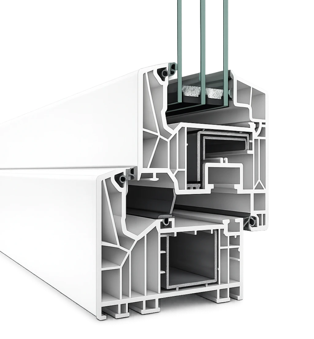 - Energiatakarékos többkamrás profil + hőszigetelő üvegezés